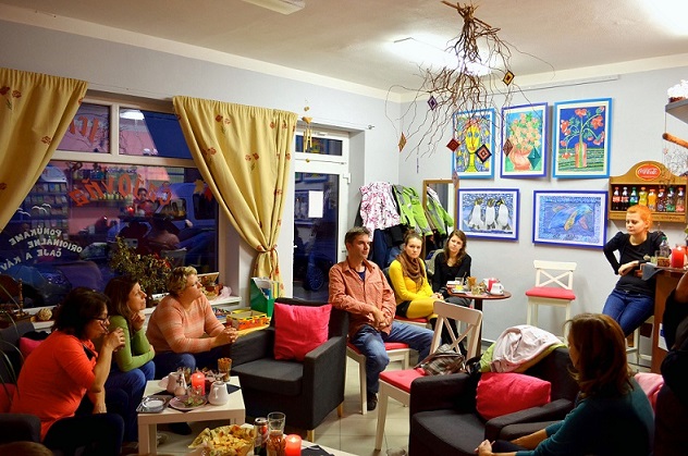 Natálka Šebová je 22-ročná slečna, ktorá rada maľuje, rada sa usmieva a rada sa podelí o svoje práce. Jej obrazy sú ako ona sama – veselé, farebné, zasnené... Natáliin talent je naozaj jedinečný o to viac, že sa nachádza v duši dievčaťa s downovým syndrómom. Táto mladá umelkyňa sa môže pochváliť napríklad ukončením osemročného vzdelávacieho cyklu na súkromnej umeleckej škole, množstvom väčších alebo menších výstav. Jedna taká výstava sa uskutočnila i v priestoroch Čajovne so srdcom. Počas výstavy sa uskutočnilo aj stretnutie rodičov detí s downovým syndrómom. Diskusia s Natáliinou rodinou im dodala nové impulzy, výmena zážitkov a skúsenosti povzbudenie, možno nový pohľad do budúcnosti svojich detí a poznatok, že v tom nie sú sami. Deti sa zas vyšantili pri tvorivých prácach.
